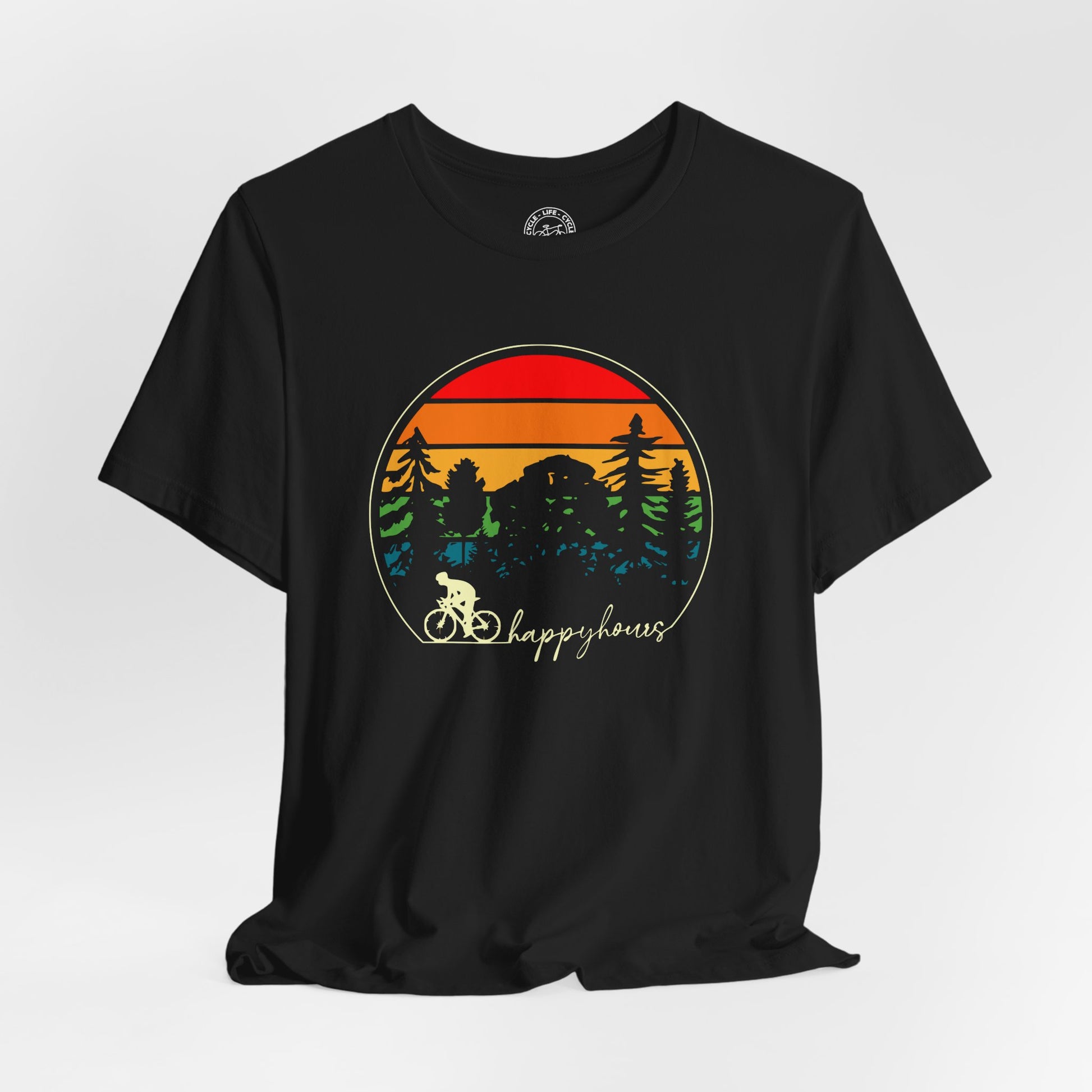 Happy Hours Cycling T-Shirt | Bella + Canvas 3001 | Sunset Bike Shirt | Cycling Lifestyle Tee | Not a Racer