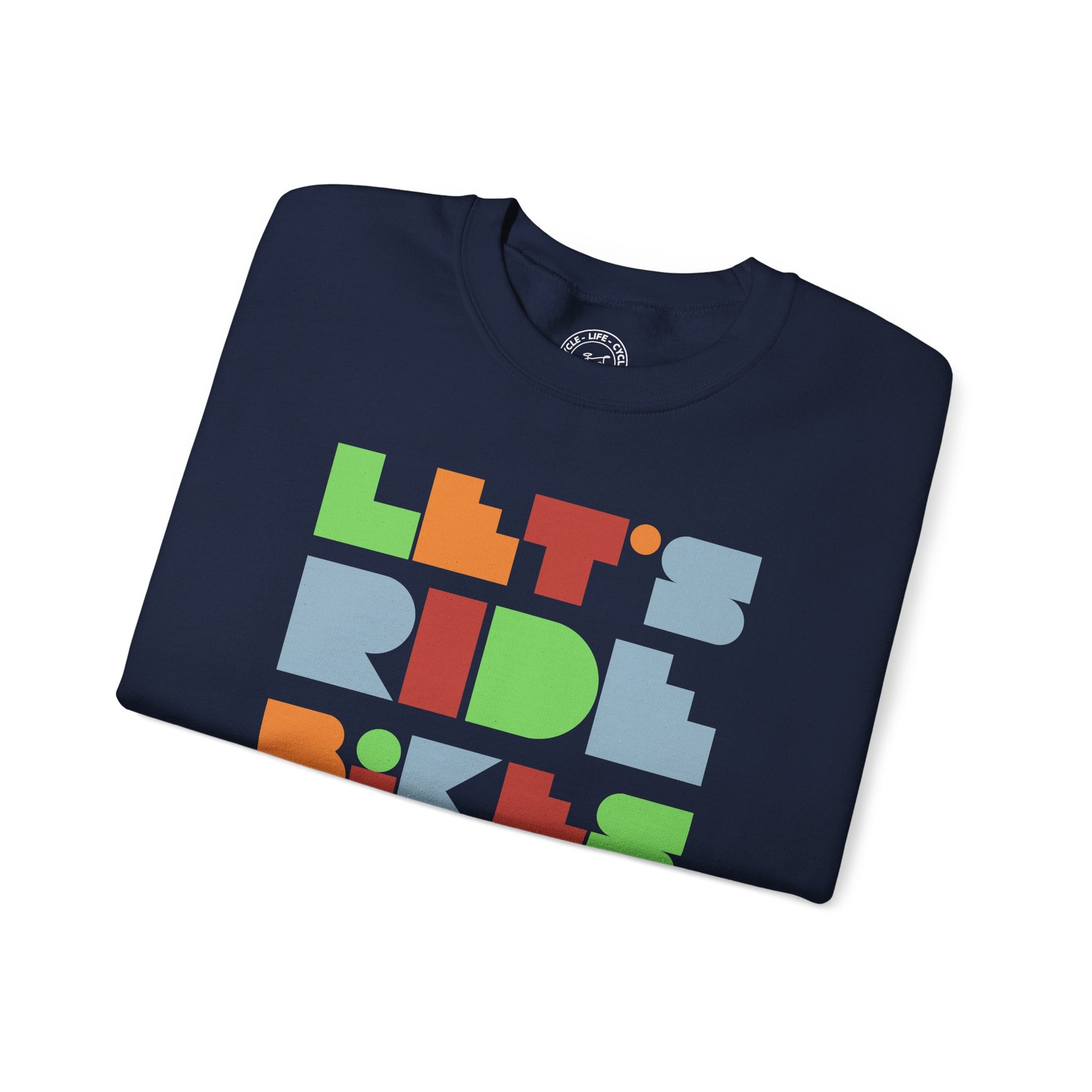Let’s Ride Bikes Sweatshirt – Geometric Cycling Graphic Unisex Gildan 18000 Crewneck | Casual Bike Life Apparel