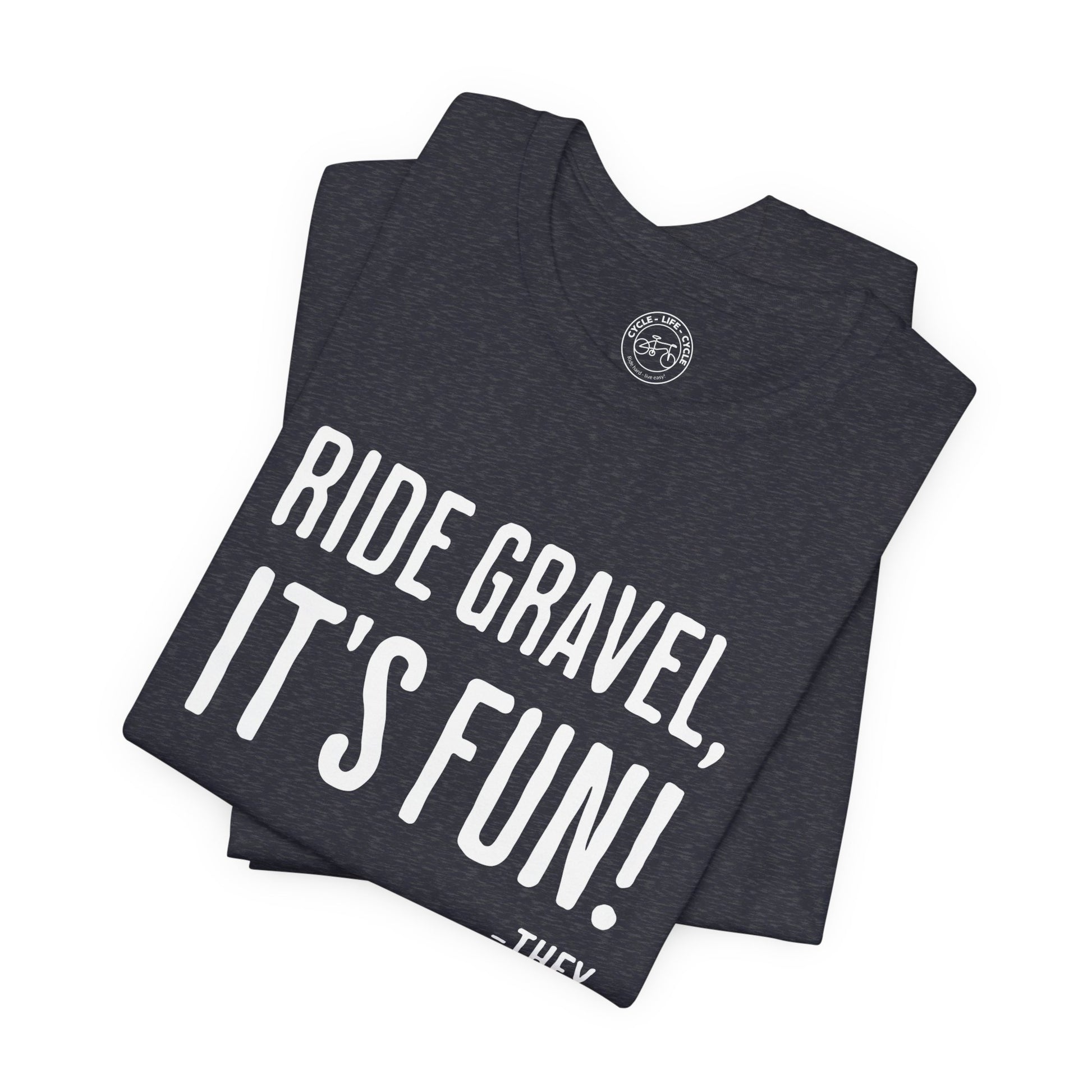 Ride Gravel It’s Fun T-Shirt | Bella + Canvas 3001 | Gravel Cycling Shirt | Funny Gravel Bike Tee | Not a Racer