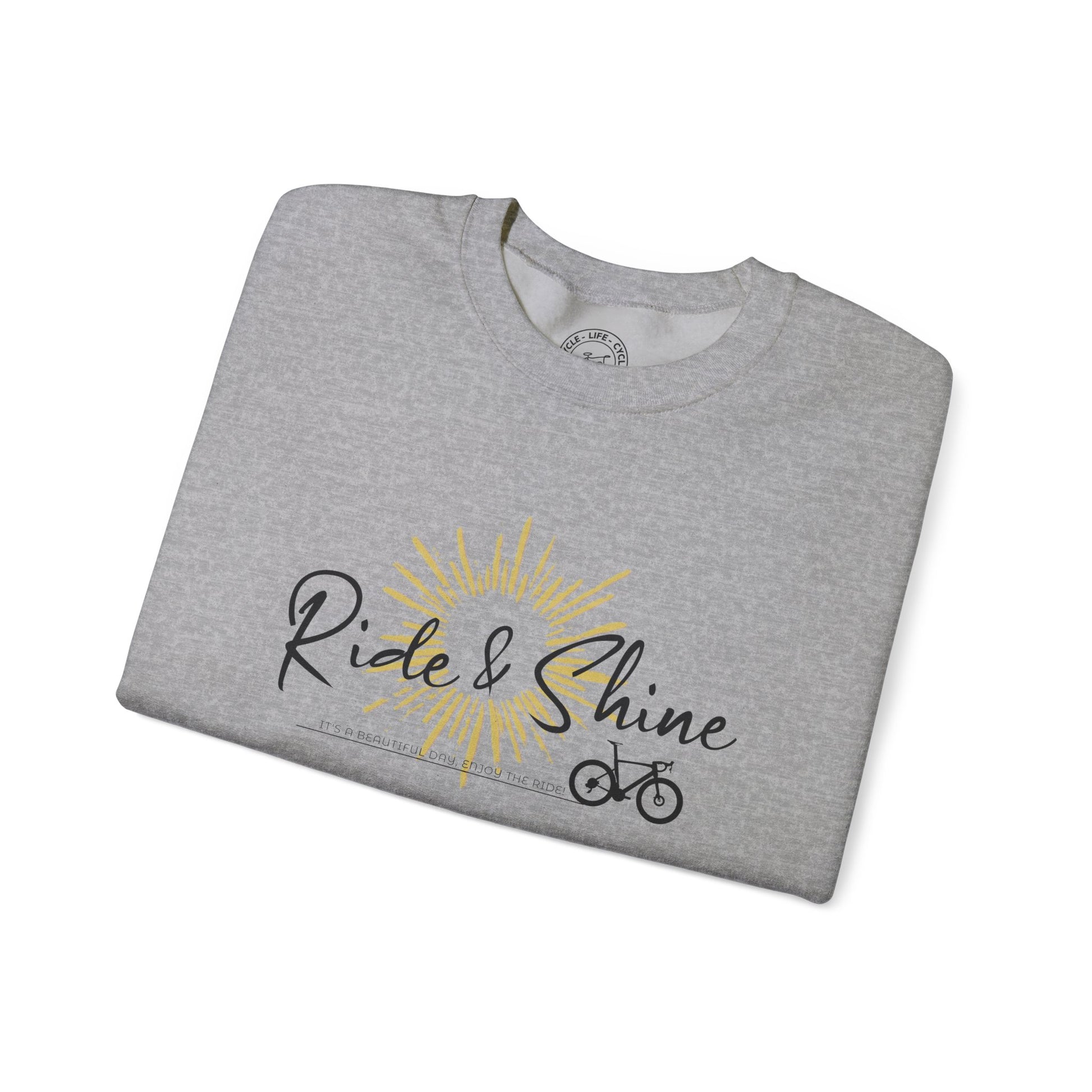 Ride & Shine Cycling Sweatshirt | Gildan 18000 Heavy Blend | Sunrise Bike Crewneck | Cycling Lifestyle Pullover